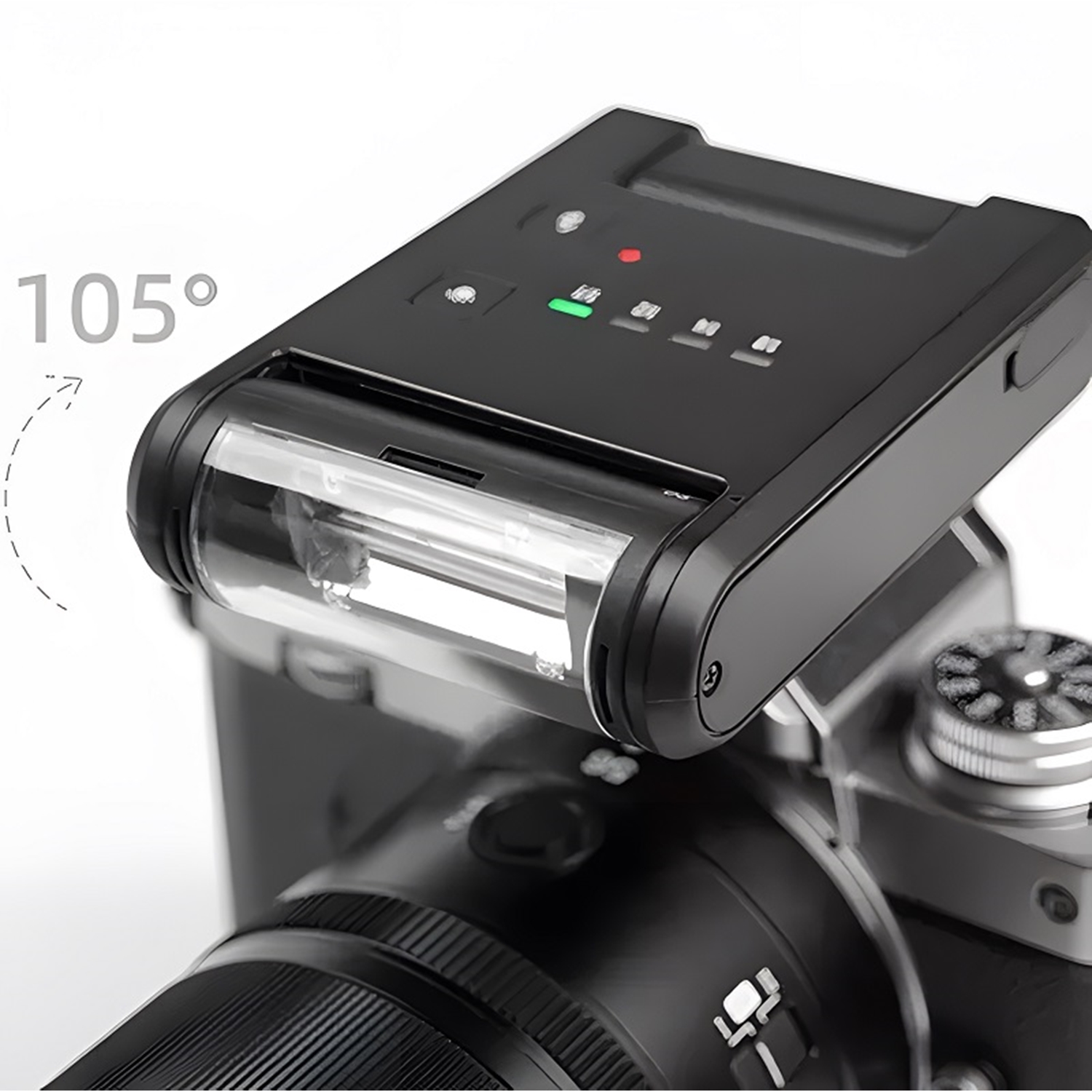 105 Derece Hareketli Işık KafasıAna flaş gövdesinin 90 derece hareket kabiliyetinin yanı sıra flaşın ışık kafası da 105 dereceye kadar hareket kabiliyetine sahiptir. Flaş sektirme veya yanal aydınlatma kullanımları için idealdir.